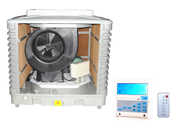環(huán)?照{(diào)一種可以產(chǎn)生大量冷風(fēng)的一種設(shè)備,該設(shè)備的制冷源是水,說到這里可能很多人都開始懷疑一個問題,那就是夏天的水本身都不涼,用水怎么降溫?其實原理很簡單,在冷風(fēng)機的四邊安裝有4片10cm厚的紙芯,在紙芯上布滿了密密麻麻的小孔,設(shè)備的底部是一個可以容納30升水的底座,里面有一臺水泵,當(dāng)水泵工作時,將設(shè)備底部的水抽出,從紙芯的頂部均勻的噴灑,就像下雨一樣向紙芯源源不斷的供應(yīng)水,當(dāng)設(shè)備內(nèi)的風(fēng)機運作時開始抽風(fēng),而外面的熱風(fēng)會源源不斷的從紙芯處進入機箱,當(dāng)熱風(fēng)經(jīng)過紙芯時,產(chǎn)生過濾作用,含在風(fēng)里的雜質(zhì)會被紙芯過濾,在有水將吸附在紙芯上的雜質(zhì)沖洗下去。