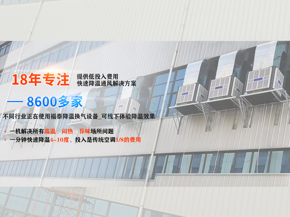 如果您的車間也存在高溫悶熱、頂樓熱、車間發(fā)熱源多、人員密集、粉塵空氣質(zhì)量不好現(xiàn)象,可以咨詢福泰16年以上的降溫策劃顧問給你免費(fèi)策劃降溫方案和預(yù)算供你參考讓你的車間涼爽一夏,告別悶熱的煎熬。
