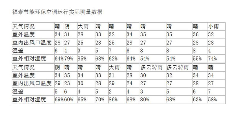 最近電話咨詢比較多的客戶提到一個(gè)這樣的問(wèn)題關(guān)于環(huán)?照{(diào)安裝后效果是怎么樣的!對(duì)于這樣的問(wèn)題首先我們要看你想達(dá)到什么效果,舉例我們的一個(gè)1000平方的車間如果你想使整個(gè)1000平方車間溫度全都降下來(lái)的話,那采取的就是環(huán)?照{(diào)整體降溫方案了!環(huán)保空調(diào)的安裝臺(tái)數(shù)是根據(jù)室內(nèi)的換氣次數(shù)來(lái)決定了。每小時(shí)的換氣次數(shù)越多,那它的降溫效果就會(huì)越好,但同時(shí)也意味著安裝成本的加大。1000平方的車間安裝12臺(tái)降溫效果還是可以做到整體降溫的,如果現(xiàn)在我們就來(lái)分析,一個(gè)200平米的塑膠廠,安裝二臺(tái)1.8W風(fēng)量的環(huán)?照{(diào),每時(shí)的換氣量大概是45次/小時(shí)。假設(shè)改塑膠廠是出于正常工作的狀態(tài),室外氣溫約為37℃,經(jīng)過(guò)環(huán)?照{(diào)降溫后的冷風(fēng)大概為27~29℃左右。由于塑膠廠的發(fā)熱機(jī)器比較多,所以安裝兩臺(tái)環(huán)?照{(diào)是塑膠廠內(nèi)的平均氣溫大概是32-34攝氏度的樣子,顯然這并不是理想的效果。這種情況下,安裝四臺(tái)環(huán)保空調(diào)的話,能是換氣量達(dá)到90次/小時(shí)(這是在室內(nèi)外空氣流通順暢的情況下,如若需要可安裝負(fù)壓風(fēng)機(jī)促進(jìn)空氣流通)。那同樣的工作環(huán)境下,能使室內(nèi)溫度降到30度以下,達(dá)到預(yù)期想要的效果。環(huán)?照{(diào)的安裝臺(tái)數(shù)是根據(jù)車間的發(fā)熱設(shè)備及車間的面積來(lái)定的,據(jù)我們多年的安裝經(jīng)驗(yàn),一般的塑膠廠上了2000平米以上的車間,車間塑膠機(jī)比較多的情況下,基本上都選擇是的崗位送風(fēng),根據(jù)工作崗位來(lái)決定安裝環(huán)?照{(diào)臺(tái)數(shù)!以下是福泰水空調(diào)廠家根據(jù)安裝的客戶進(jìn)行跟蹤測(cè)試降溫效果做出了幾天的跟蹤數(shù)據(jù),供客戶參考和了解