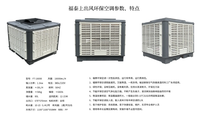 4、環(huán)保空調(diào)的三片低噪音尼龍風(fēng)葉適用于噪音要求較高場所,直接送風(fēng)15米。